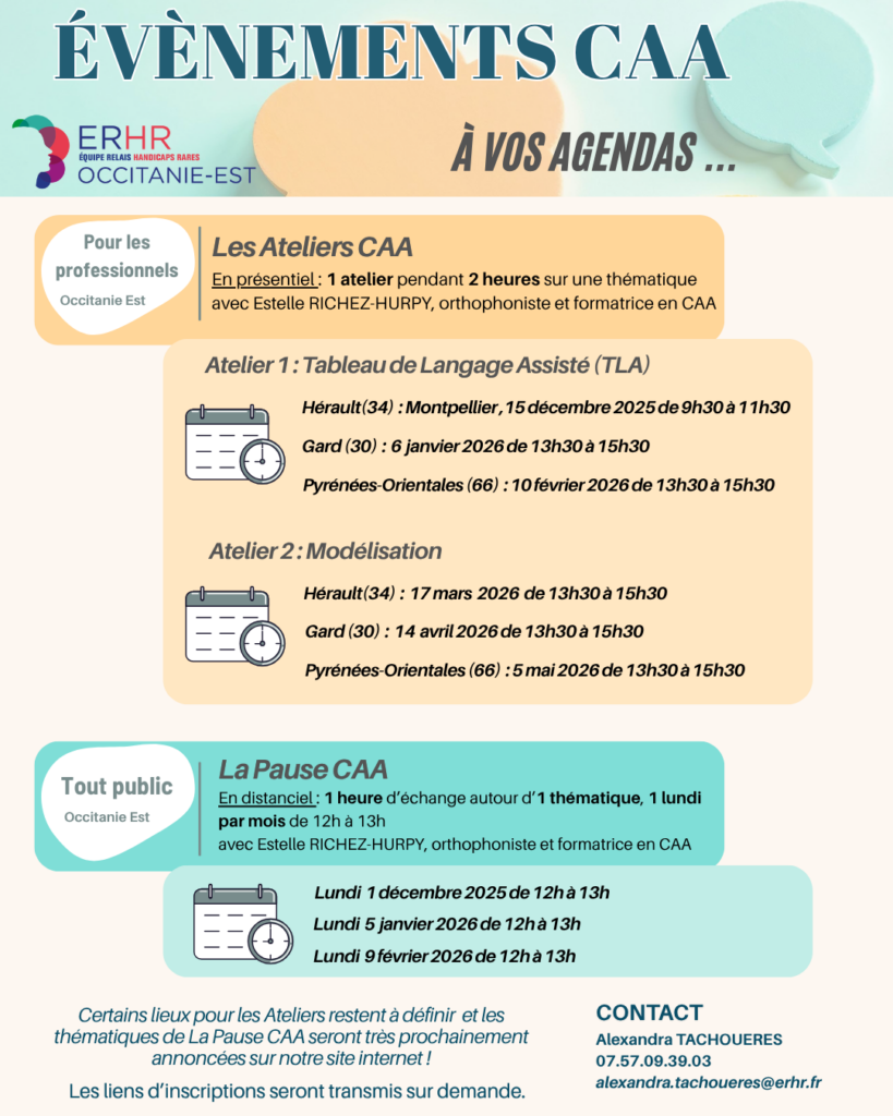 L’Équipe Relais Handicaps Rares en partenariat avec Estelle RICHEZ-HURPY, orthophoniste et formatrice en CAA (Communication Alternative et Améliorée), vous proposent « Les Ateliers CAA » dans l’Hérault, le Gard et les Pyrénées-Orientales.