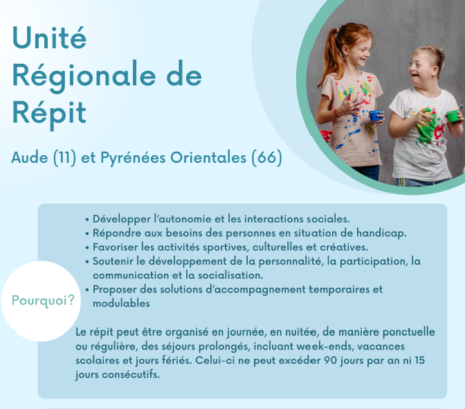 > ERHR Occitanie Est Unité Régionale de Répit – dans l’Aude 11 et les Pyrénées Orientales 66 Actualités Ecouter Lire la suite Publié le 24 mars 2026 A la une Actualités ERHR Occitanie Est Visio de présentation de la Plateforme Handiapason Actualités ERHR Occitanie Est Unité Régionale de Répit – dans l’Aude 11 et les Pyrénées Orientales 66 Lire la suite Toutes les actualités